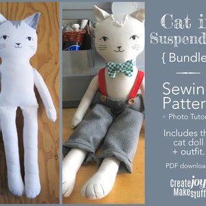 Cat With Dungarees And Bow Tie Instant Download Sewing Etsy Rag Doll Tutorial Diy Rag Dolls Cat Soft Toy